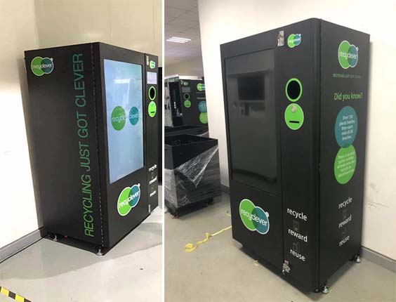 A Reverse Vending Machine, also referred to as a RVM, is a Collection Point for consumers to return their Empty Containers. The machine, unlike a bin, selectively accepts or refuses containers depending on how the software is set up in conjunction to the onboard sensors. The users experience ends with a reward for returning the containers in the form of a printed redeemable voucher or an option to donate to a charity. By tracking the returned containers and rewarding users, adopting a reverse vending machine dramatically increases the percentage of containers that remain in the circular loop of recycled materials.